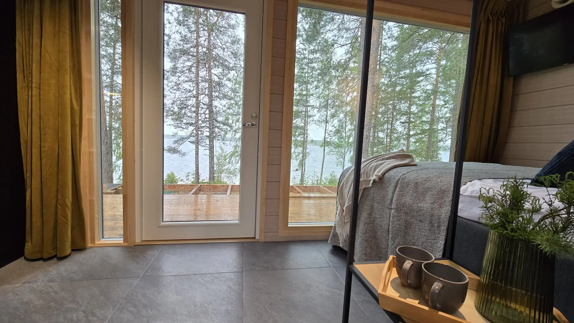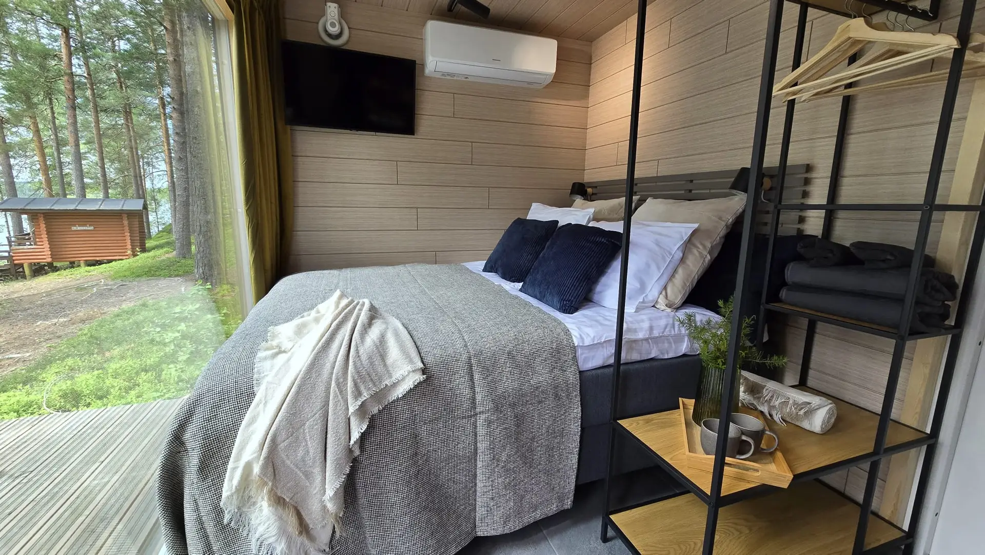 Konttiaitta Saimaa tuo kaiken tarpeellisen yhteen konttiin. Suuret ikkunat tuovat valoa tilaan ja tarjoaa mahtavat puitteet näköalalle. Varusteluun kuuluu muun muassa