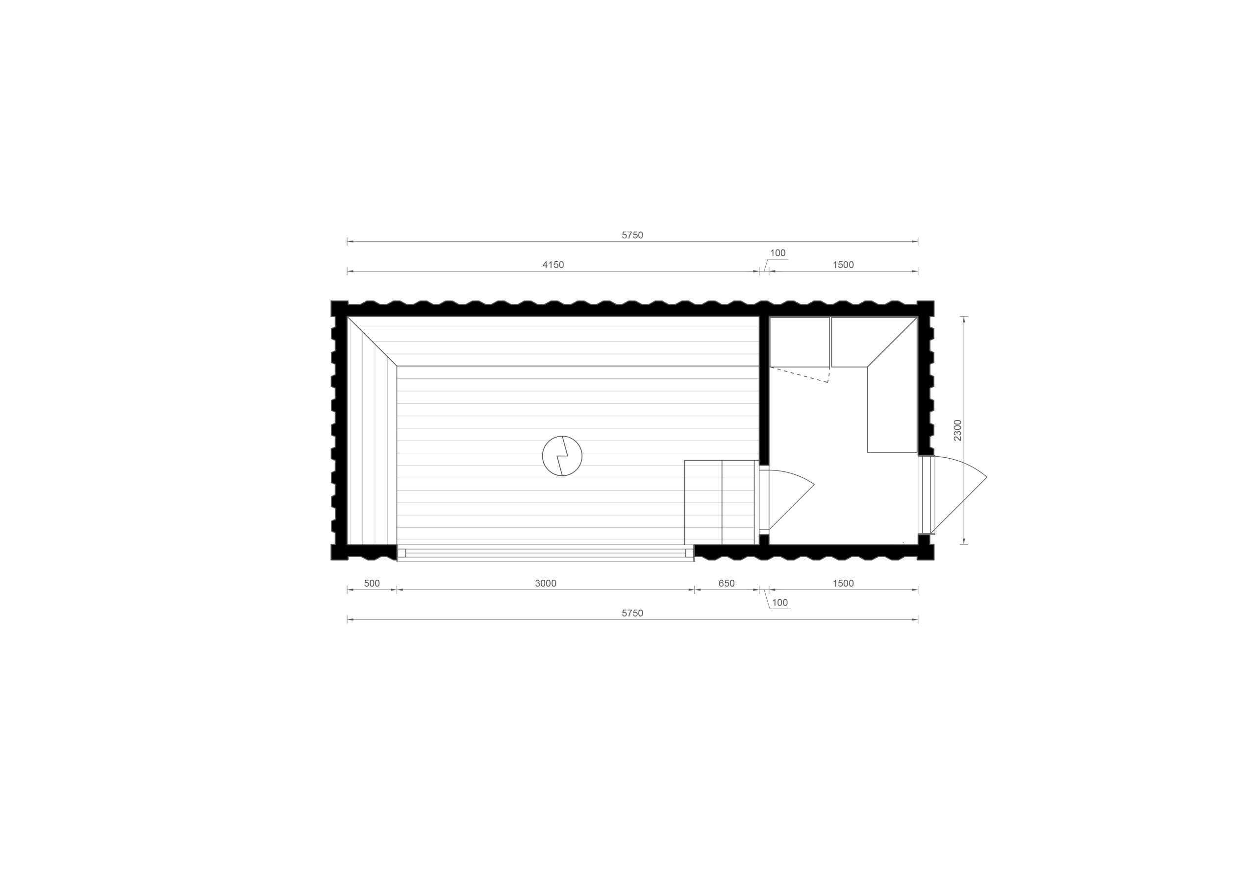 Pohjana käytetty 20'DC / 6m merikonttia. Sisältä löydät taukotilan ja saunan.